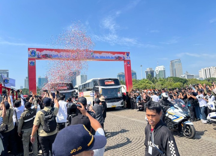 Berdasarkan pantauan di lokasi, ratusan bus mulai bergerak meninggalkan Monas menuju berbagai daerah tujuan di Jawa Tengah, Jawa Timur, hingga Sumatera, seperti Madiun, Pekalongan, dan Malang.