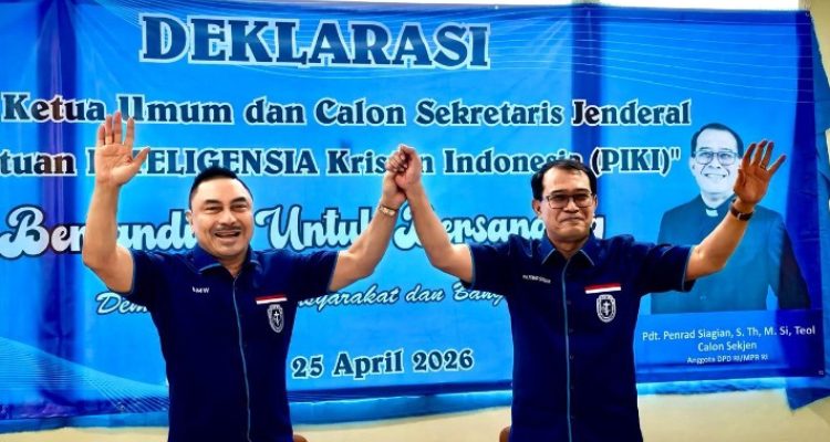 Michael Wattimena (kiri) dan Pdt. Pendrad Siagian (kanan) dekrasikan Calon Ketum dan